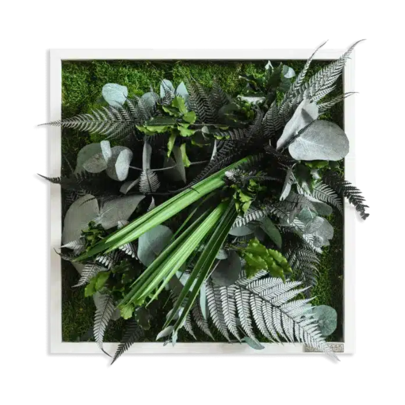 Jedes unserer Kunstwerke ist eine einzigartige moderne Pflanzenkomposition, die dein Zuhause oder Büro in ein lebendiges Dschungelabenteuer verwandelt. Mit echtem, konserviertem Moos und sorgfältig ausgewählten Pflanzen schaffen wir für dich eine atemberaubende Dschungelatmosphäre, die jeden Raum in einen grünen Urwald verwandelt.